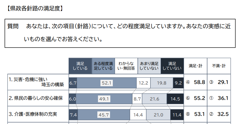 埼玉県民の“満足度”上昇、日本一の暮らしやすさ追求へ 満足度が高かった項目ベスト3発表 重要度は高いのに満足度が低くかった課題とは|埼玉新聞2025/11/27 saitama-np.co.jp/articles/17010… 埼玉県は25日までに、2025年度の県民満足度調査の結果を発表した x.com/gourmet_saitam…